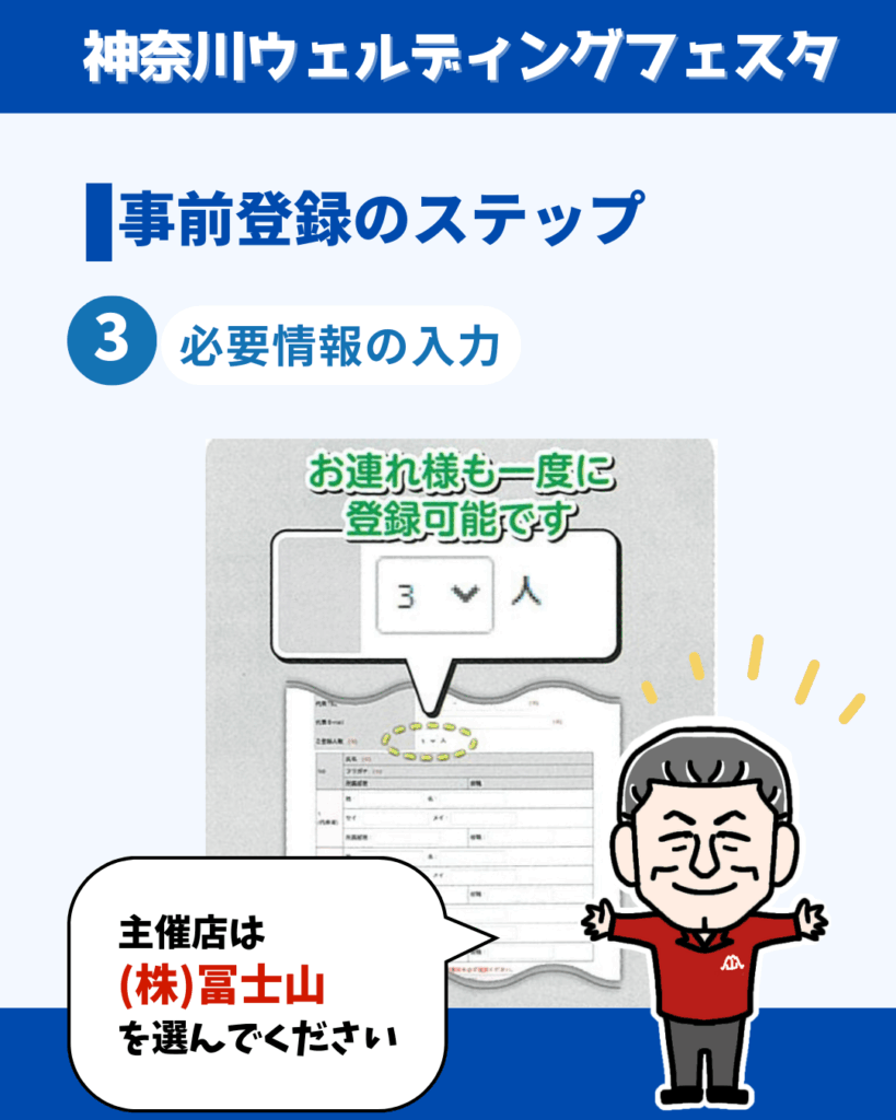 主催店は(株)冨士山を選んでください - 入場証を印刷し、会場へ持参